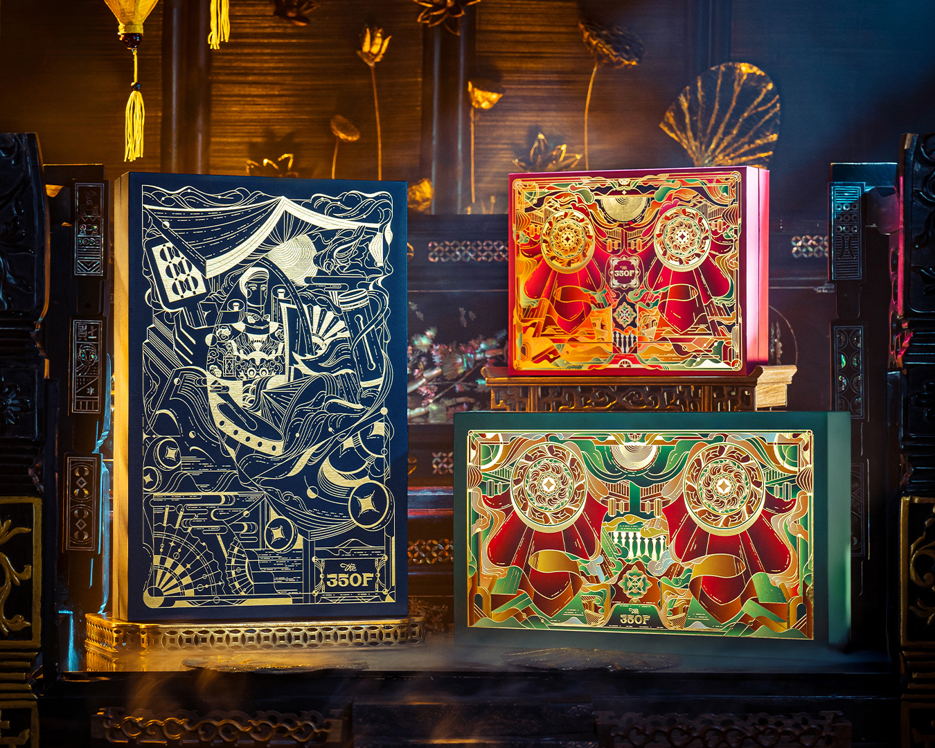 Không dừng lại ở hương vị, tinh thần sáng tạo của The 350F còn thể hiện mạnh mẽ qua từng hộp bánh. Lấy cảm hứng từ kho tàng văn hoá Việt, bộ sưu tập Trung thu của thương hiệu tựa như một “bảo tàng” thu nhỏ, nơi truyền thống giao hòa cùng mỹ cảm đương đại.