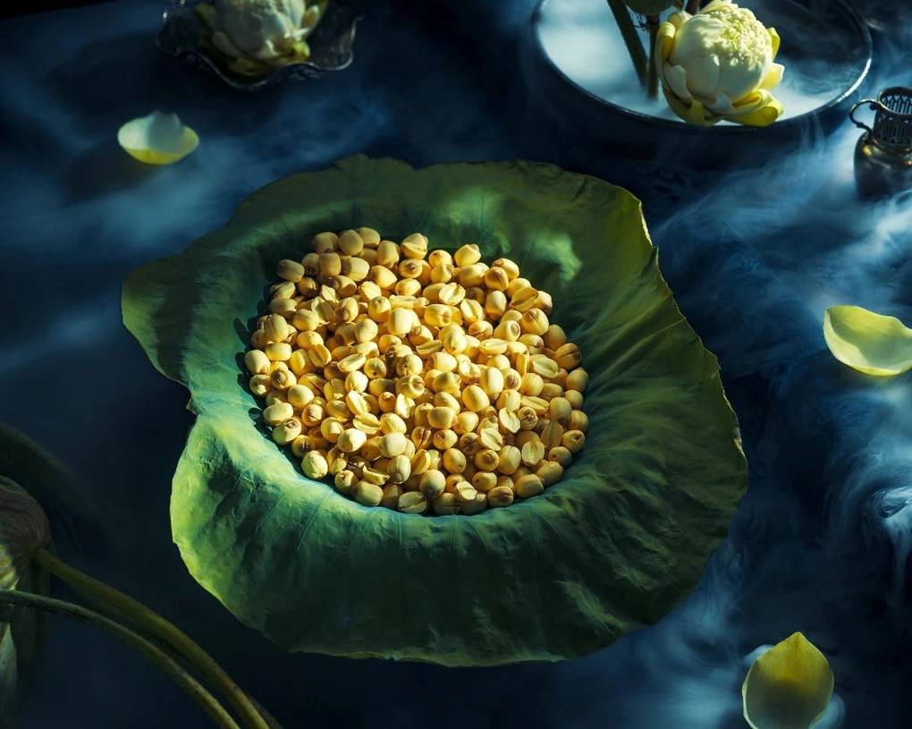 Hay như chiếc bánh nhân ngọt, thương hiệu cũng lựa chọn hạt sen Huế để làm nhân nền cơ bản. Hạt sen Huế có vị thơm ngọt đặc trưng, có độ bùi và sánh dẻo. Chưa kể, hạt sen Huế có giá thành cao so với các loại đậu như đậu xanh hay đậu đỏ.